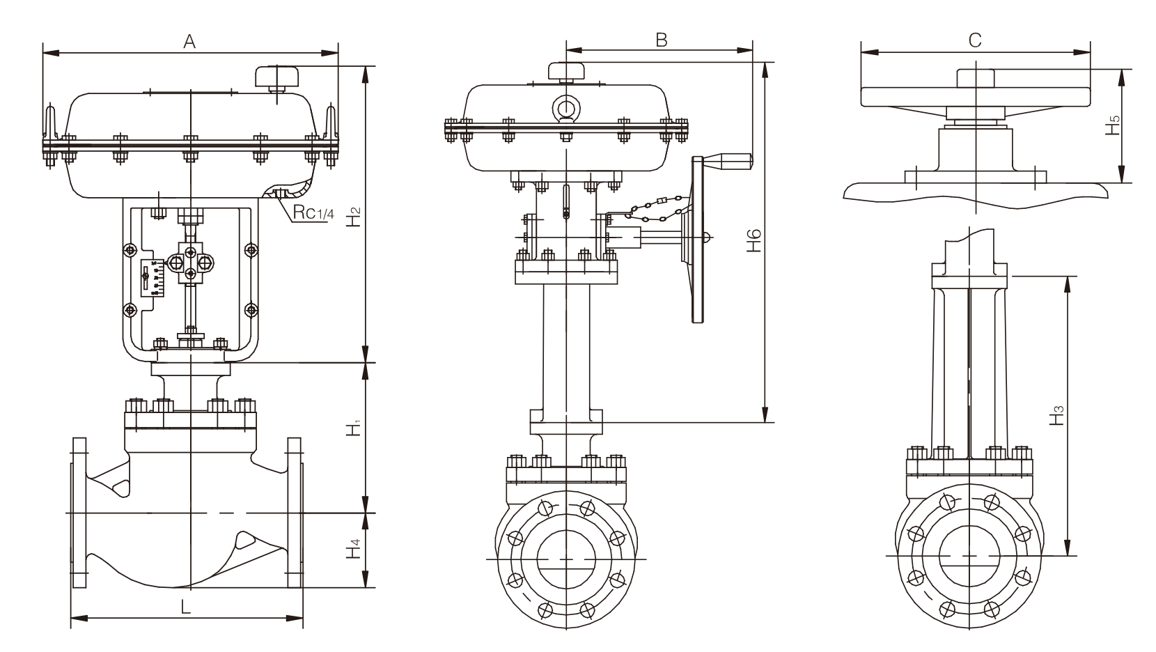 氣動(dòng)套筒調(diào)節(jié)閥是由多彈簧氣動(dòng)薄膜執(zhí)行機(jī)構(gòu)和低流阻精小型調(diào)節(jié)閥閥體組成,多彈簧執(zhí)行機(jī)構(gòu)高度低、重量輕、裝備簡(jiǎn)便。閥體流道呈S流線(xiàn)型,具有結(jié)構(gòu)緊湊、重量輕、動(dòng)作靈敏、壓降損失小、閥容量大、流量特性精確、維護(hù)方便等優(yōu)點(diǎn),可用于苛刻的工作條件。其配用電-氣閥門(mén)定位或氣動(dòng)閥門(mén)定位器,可實(shí)現(xiàn)對(duì)工藝管路流體介質(zhì)的自動(dòng)調(diào)節(jié)控制。廣泛應(yīng)用于精確控氣體、液體、蒸汽等介質(zhì)的工藝參數(shù)如壓力、流量、溫度、液位等參數(shù)保持在給定值。